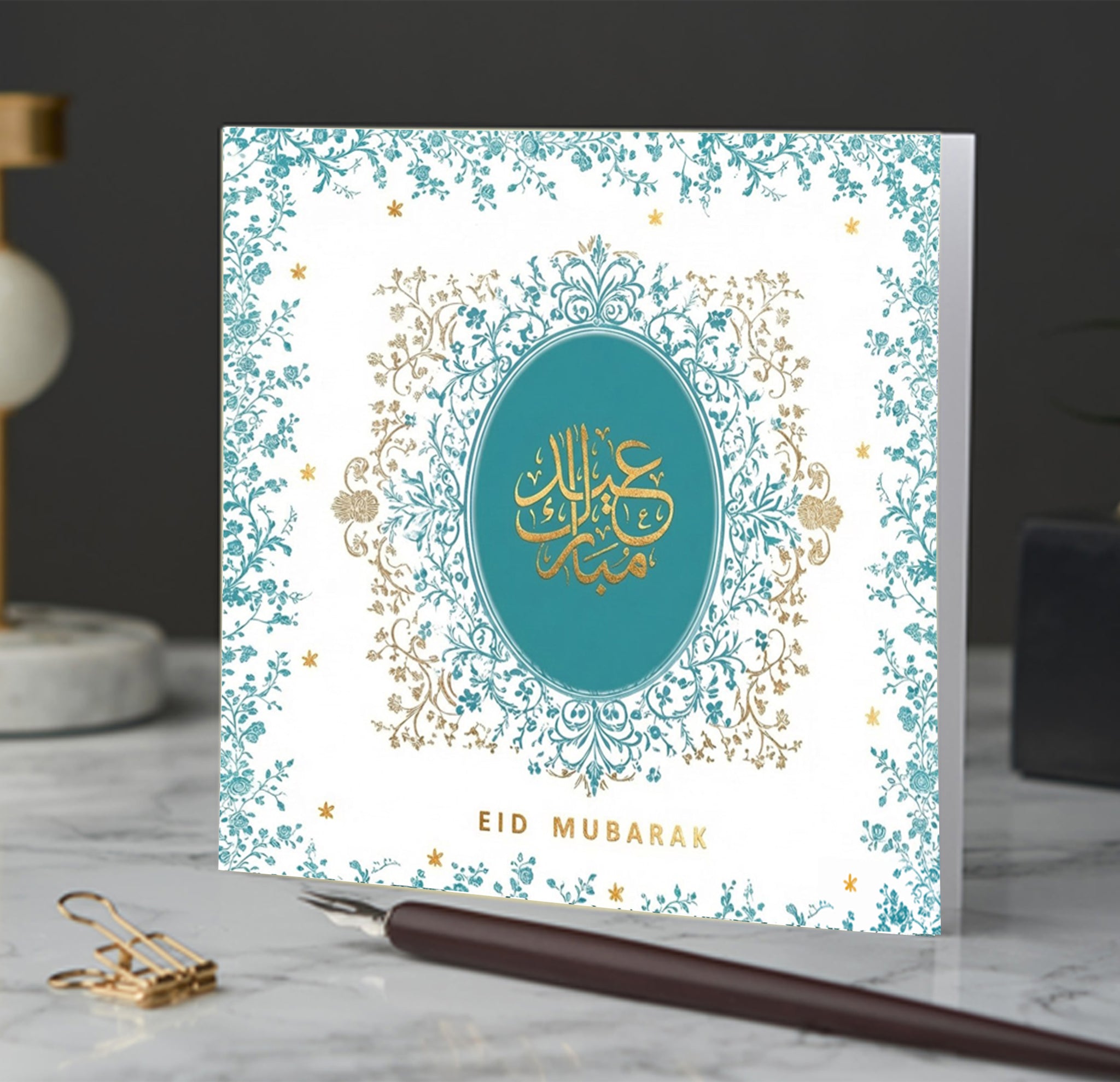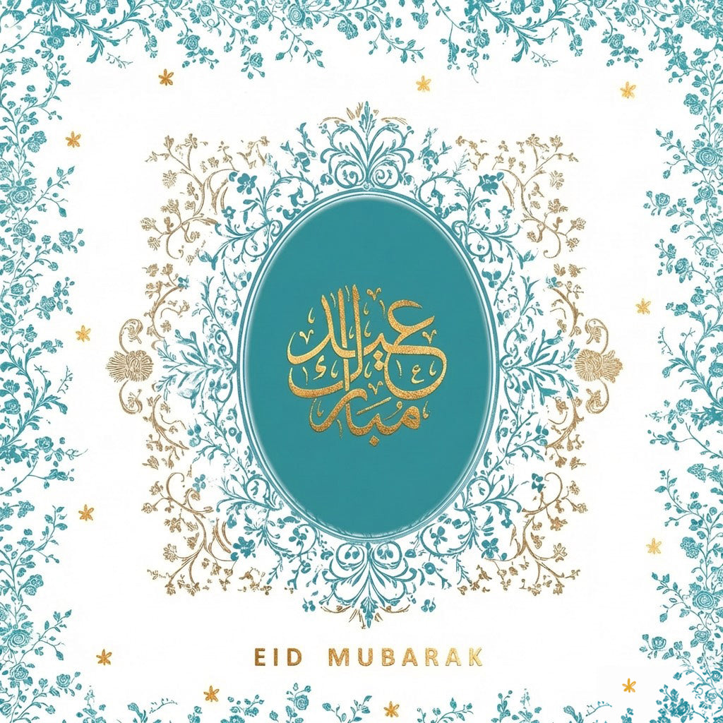 Teal Eid Mubarak Card with Gold Foiled Detail - EG 06